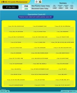 According to Bhubaneswar Municipal Corporation (BMC), 63 of the new patients on the day are from quarantine and 153 local contacts.
