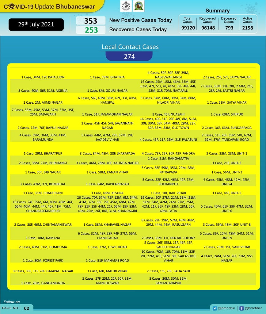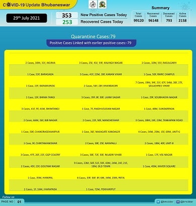 Of the new cases registered in the last 24 hours, 79 were from quarantine and 274 local contacts, according to Bhubaneswar Municipal Corporation (BMC).