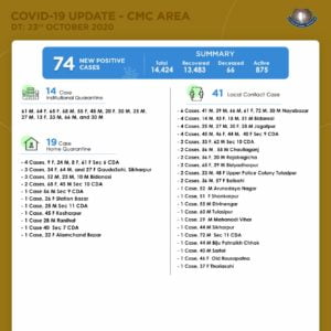 Cuttack: After the slide in daily number of COVID-19 cases in the city for 3 days, it has started rising in the city since Wednesday. The areas under Cuttack Municipal Corporation (CMC) area reported 74 new cases during the last 24 hours.