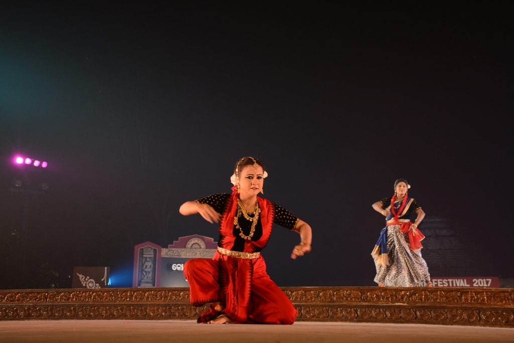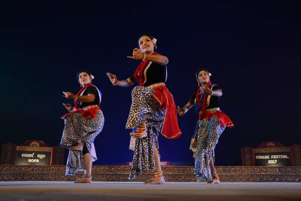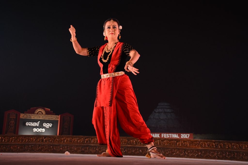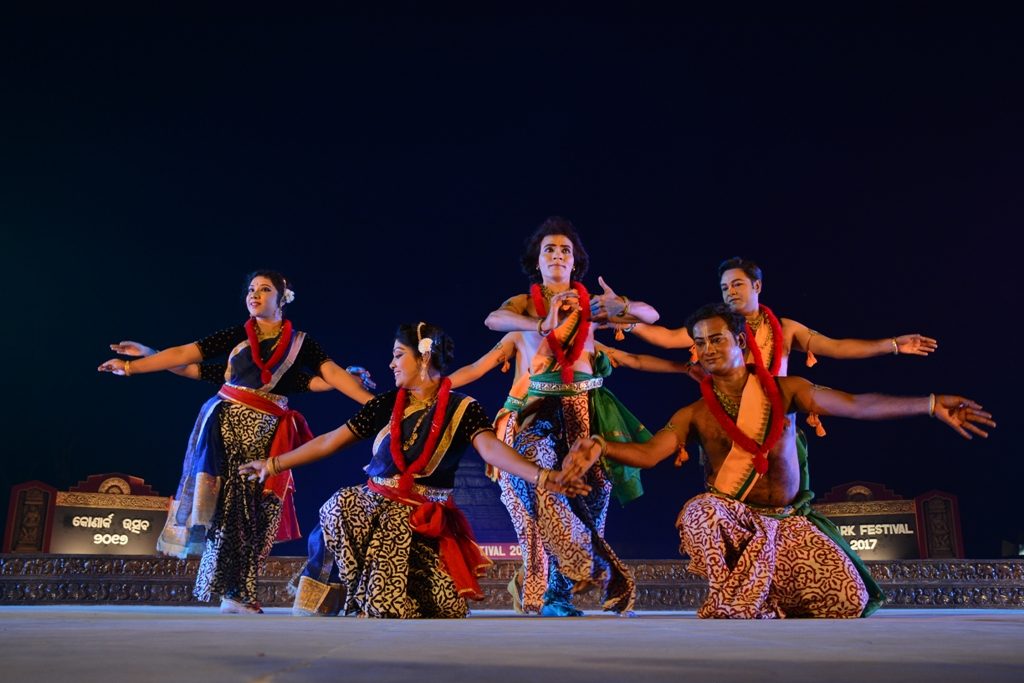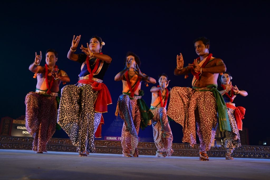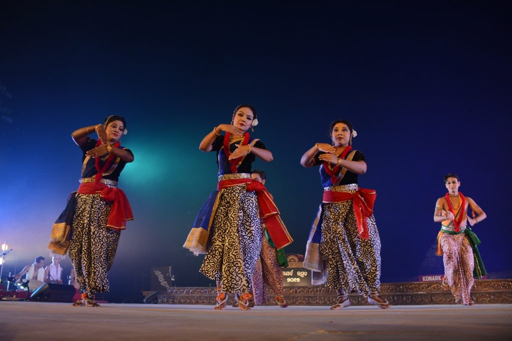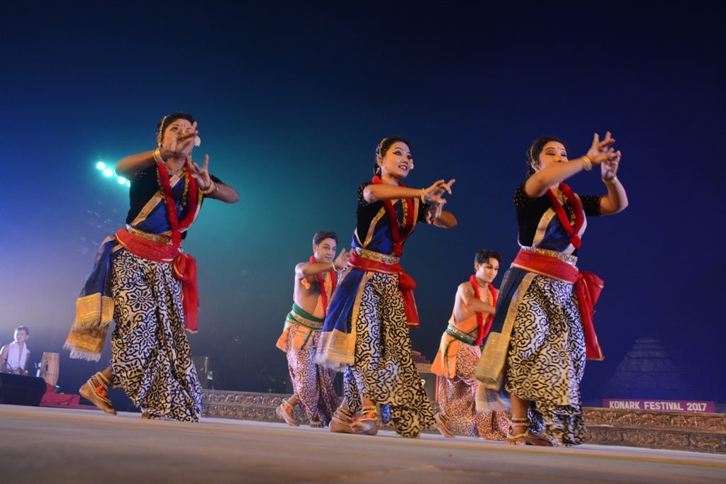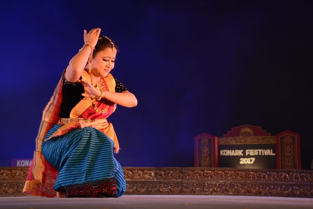 Bimbabati Devi and her group from Manipur perform at Konark Festival at Konark on Monday. Photograph: Odishabytes