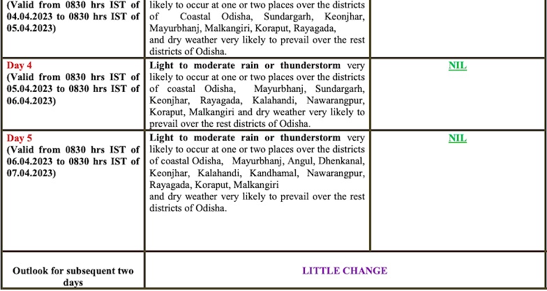 Bhubaneswar: While rain and thunderstorm may continue till April 7 morning, Odisha is likely to witness a gradual rise in day temperature 4-6°C during the next 3 days, the India Meteorological Department (IMD) informed on Sunday.