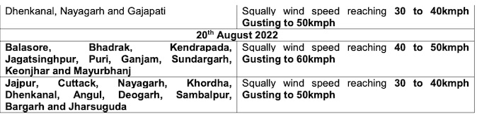 Orange warning continues for the subsequent 24 hours with a forecast for heavy to very heavy rainfall (7 to 20 cm) at one or two places in Jharsuguda, Sundargarh, Keonjhar, Deogarh, Sambalpur, Bargarh, Sonepur and Balangir districts. Heavy rainfall (7 to 11 cm) is very likely to occur at isolated places over Mayurbhanj, Angul, Boudh, Kalahandi, Nuapada, Nabarangpur and Dhenkanal districts.