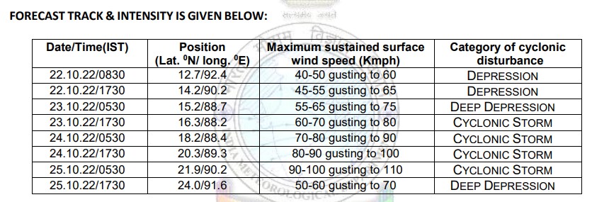 According to the midday bulletin, it is very likely to recurve gradually north-northeastwards and intensify into a cyclonic storm over the central Bay of Bengal by October 24 morning.