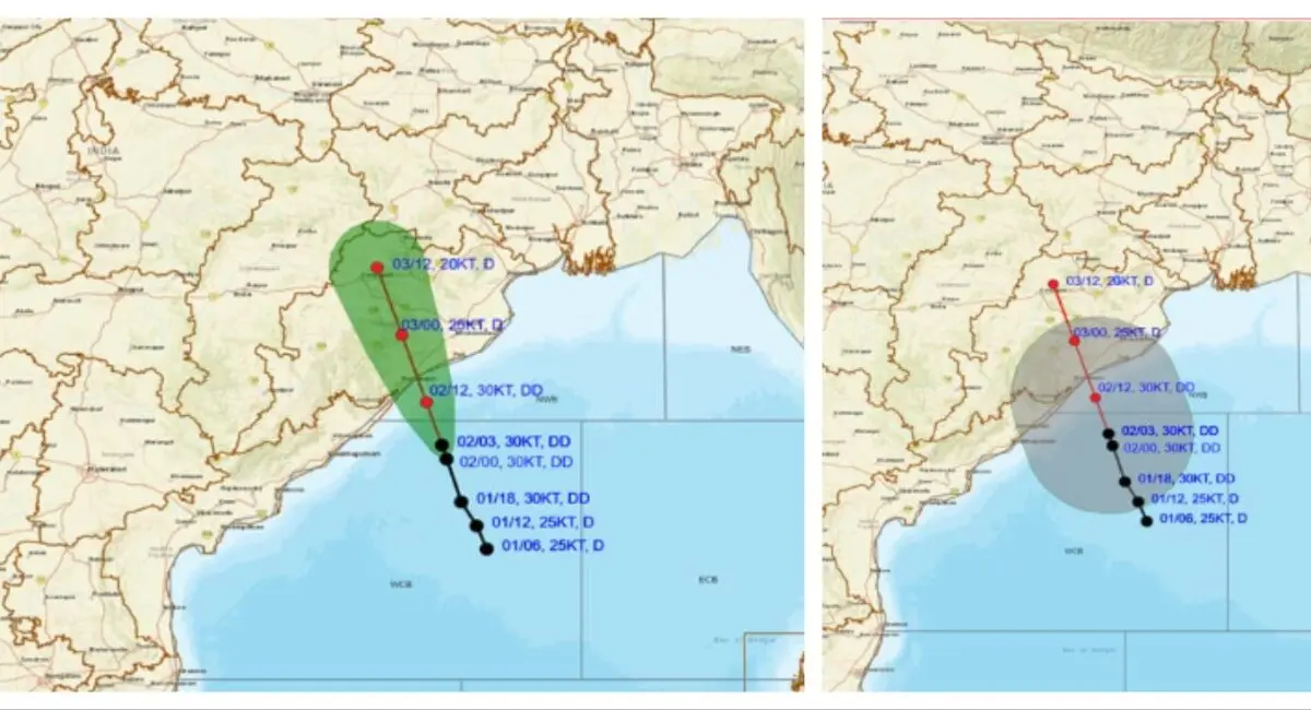 The system was around 200 km south of Puri in Odisha), 250 km east-northeast of Visakhapatnam in Andhra Pradesh and 280 km south-southwest of Paradip in Odisha.