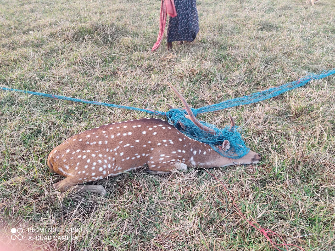According to sources, as the deer are destroying the crop, the farmers had laid net in the paddy field. The deer got trapped in the net.