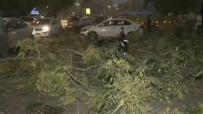 #WATCH | Delhi: Branches of trees fell after the National Capital experienced dust storm in several areas.