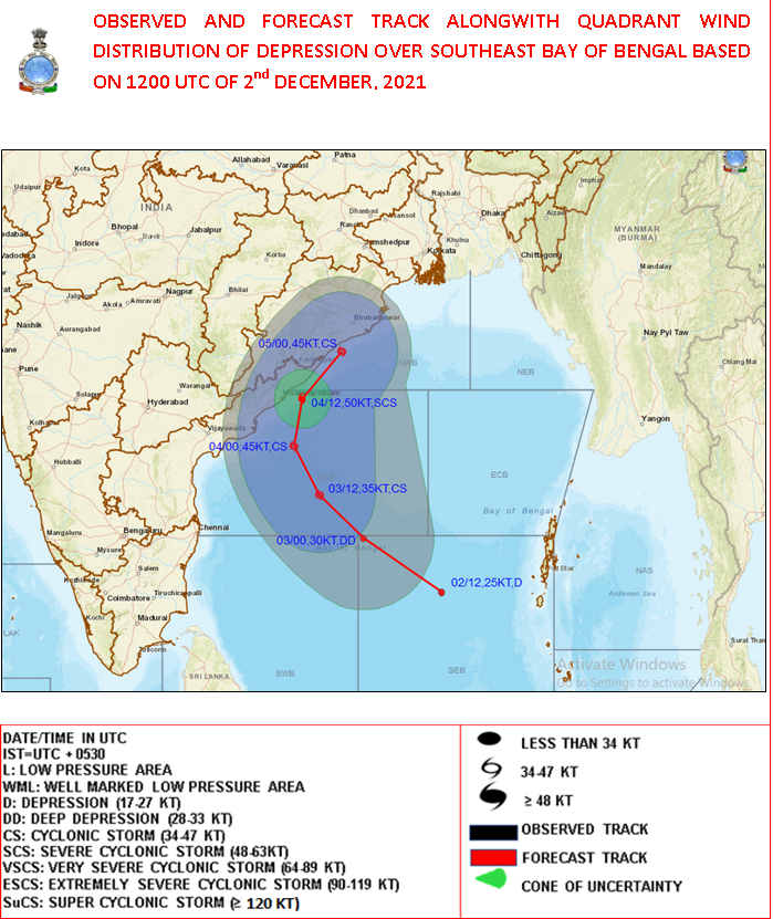 “The system is likely to cross the Odisha-north Andhra Pradesh coast on December 4 morning. The maximum intensity (wind speed) will be around 90 kmph gusting up to 100 kmph. Odisha coast will experience 40 to 50 kmph wind from December 3 and the intensity will increase to 70 to 80 kmph, gusting to 90 kmph on December 4,” he said.