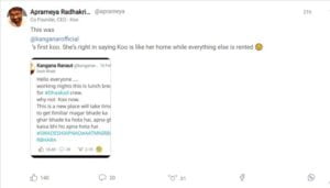 Mayank Bidawatka, one of the co-founders of Koo, welcomed Kangana in a post. “@kanganarofficial Kangana ji, yeh aapka ghar hai. Yahaan aap swabhimaan se apne vichaar sabke saamne rakhein (This is your home. Express your opinions here with pride).”
