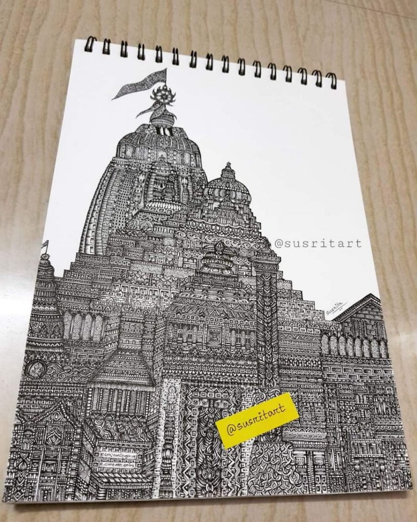 Drawing Jagannath Temple took Susrita two months. “It is a part of the Big Series that I have been doing and since it is Rath Yatra today, there could not have been a better day to complete the same,” said the 25-year-old biotechnologist from Bhubaneswar.