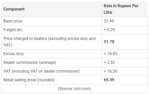 The Delhi government has almost doubled the levy on diesel to 30 per cent. Here is the complete break-up: