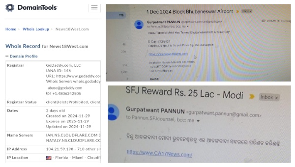 According to sources, the domain Pannun used was booked just two days before he sent the threat mail.