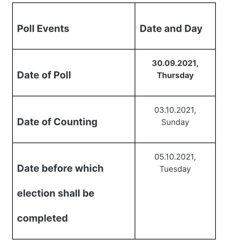 According to the notification, polling will be held on September 30 and the counting of votes and announcement of the results will be done on October 3.