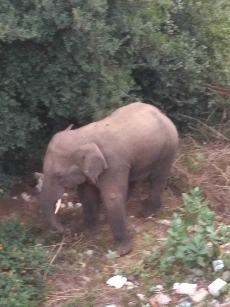 Vehicular movement has been restricted in the area since today morning. Forest department officials said that they will drive out the elephant after the evening.