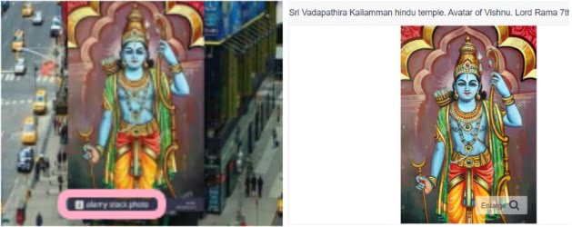 The above image is fake. It is carried from makesweet.com, which has similar templates for billboards. One of the photos of Lord Ram is taken from Alamy. It is a photograph of Lord Ram from Sri Vadapathira Kaliamman Hindu temple of Singapore.
