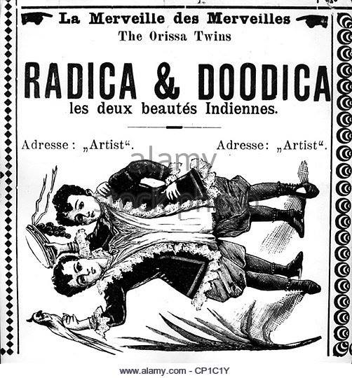 The earliest confirmed account of Odias in England and America is of the Siamese twins Radhika and Doodica, popularly known as the “Orissa Twins”. There are various newspaper accounts of these twins having toured the Americas, Europe and England. The sisters had a decade long stint, exhibiting themselves as freaks in different exhibitions.