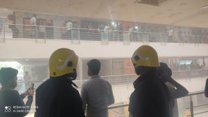 The blaze was spotted on the first and second floors of the shopping mall. Though the cause of the fire is yet to be ascertained, a short circuit in the battery room on the second floor is suspected to have caused the fire, sources said.