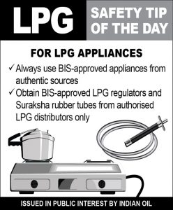 Apart from fire alarms and smoke detectors, the kitchen needs careful planning. According to Indane, it is very important to ensure that all gas pipes and fittings are BIS approved. If you smell a gas leak, turn off the regulator valves and open all doors and windows. Do not operate any electrical switch. Even if a switch is on, let it be on as turning it off or switching it on can produce a spark that can ignite the gas. Call for help after coming out of the kitchen.