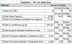 As many as 12,214 candidates have been shortlisted for the first-round admissions. Check the statistics of the first-round selection below: