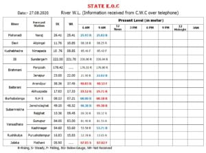 Mentioned hereunder is the water level of the major rivers in Odisha at 9 am on Thursday.