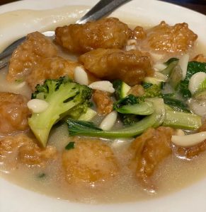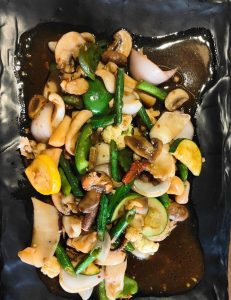 Garlic pepper chicken, Caramel custard, Vegetarian EFU noodles, Vegetarian Thai Basil Hot PotAverage Cost