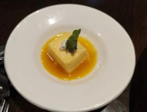 Kimchi Salad, Fried Jumbo Prawns, Wok Fried Pepper Paneer, Coconut caramel custard and Sushi