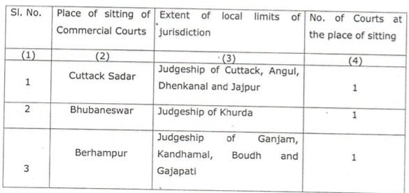 The notification further said that the court at Cuttack Sadar will have jurisdiction over Cuttack, Angul, Dhenkanal and Jajpur districts while the commercial court at Bhubaneswar will have jurisdiction over Khurda district.