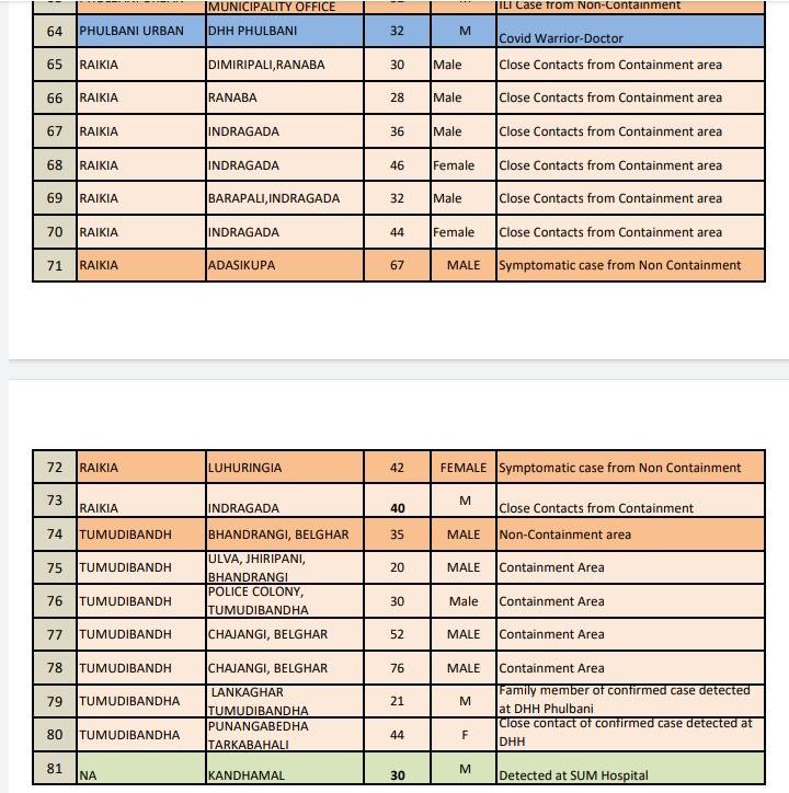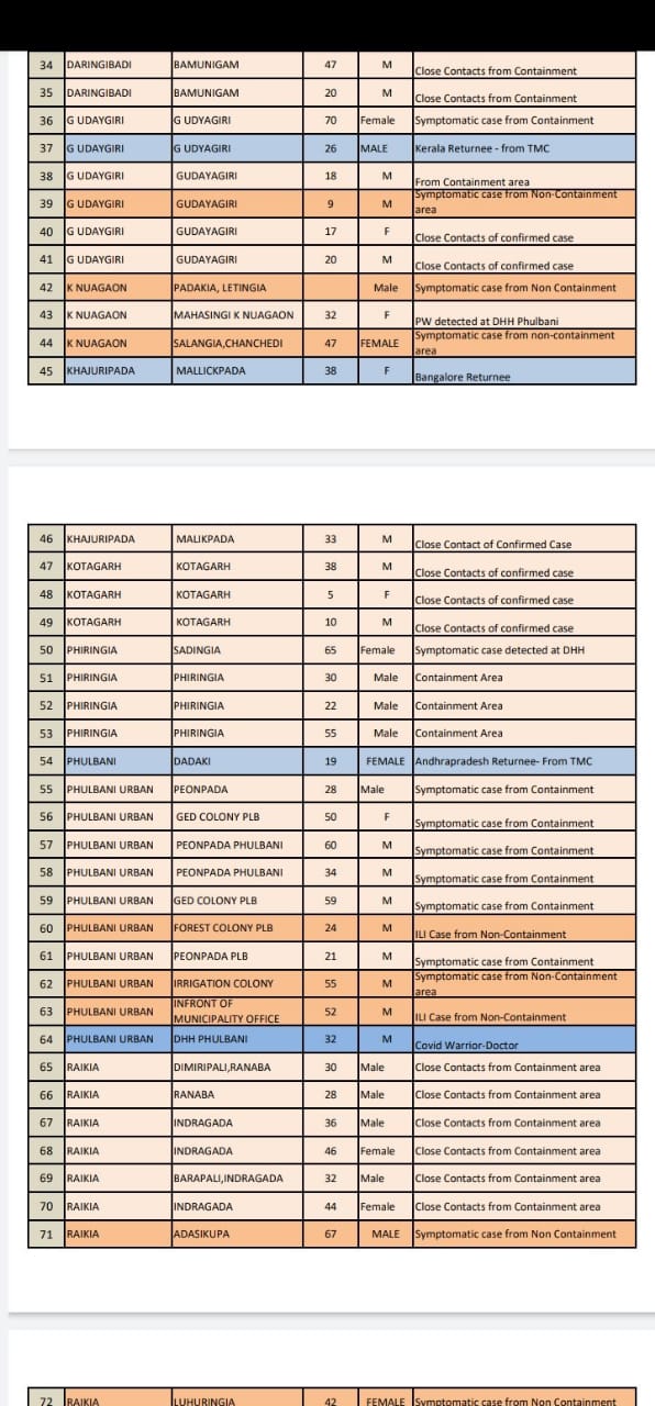 The highest of 13 new cases were reported from Daringbad, followed by 12 from Chakapad, 11 from Phulbani, 10 from Baliguda, nine from Raikia, seven from Tumudibandh, six from G.udaygiri, four from Phiringia, three each from K.nuagaon and Kotagad, two from Khajuripada and another one at SUM hospital.