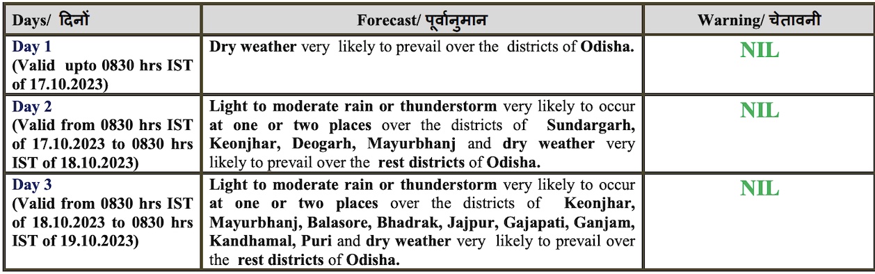Meanwhile, the weather agency has predicted light to moderate rain in some parts of the state, which has been experiencing hot weather conditions, from Tuesday (October 17). There will also be no large change in the maximum and minimum temperature across the state during the next 5 days.