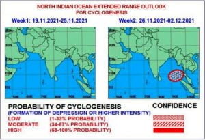“The numerical models including IMD GFS, GEFS, NCUM, NEPS, ECMWF and ECMWF indicate a fresh LPA over equatorial Indian ocean and adjoining south Andaman Sea towards the later part of the week from November 26 to December 2. It may intensify into a higher category system (depression or above) over southeast Bay of Bengal and its neighbourhood,” the IMD said.