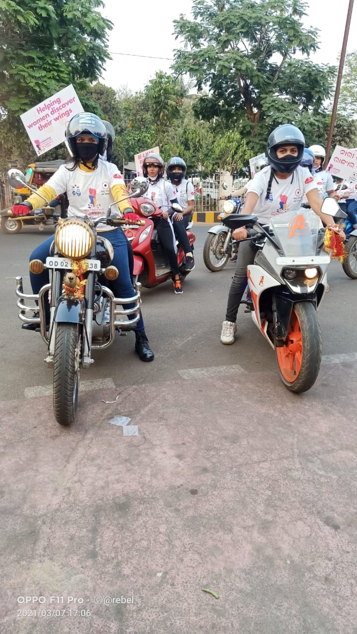 Samantray organised a bike rally, in which only women participated. As many as 35 women rode bikes with pillion riders holding placards on women empowerment. The rally was started from Durga Mandap to Bhubaneswar police station.