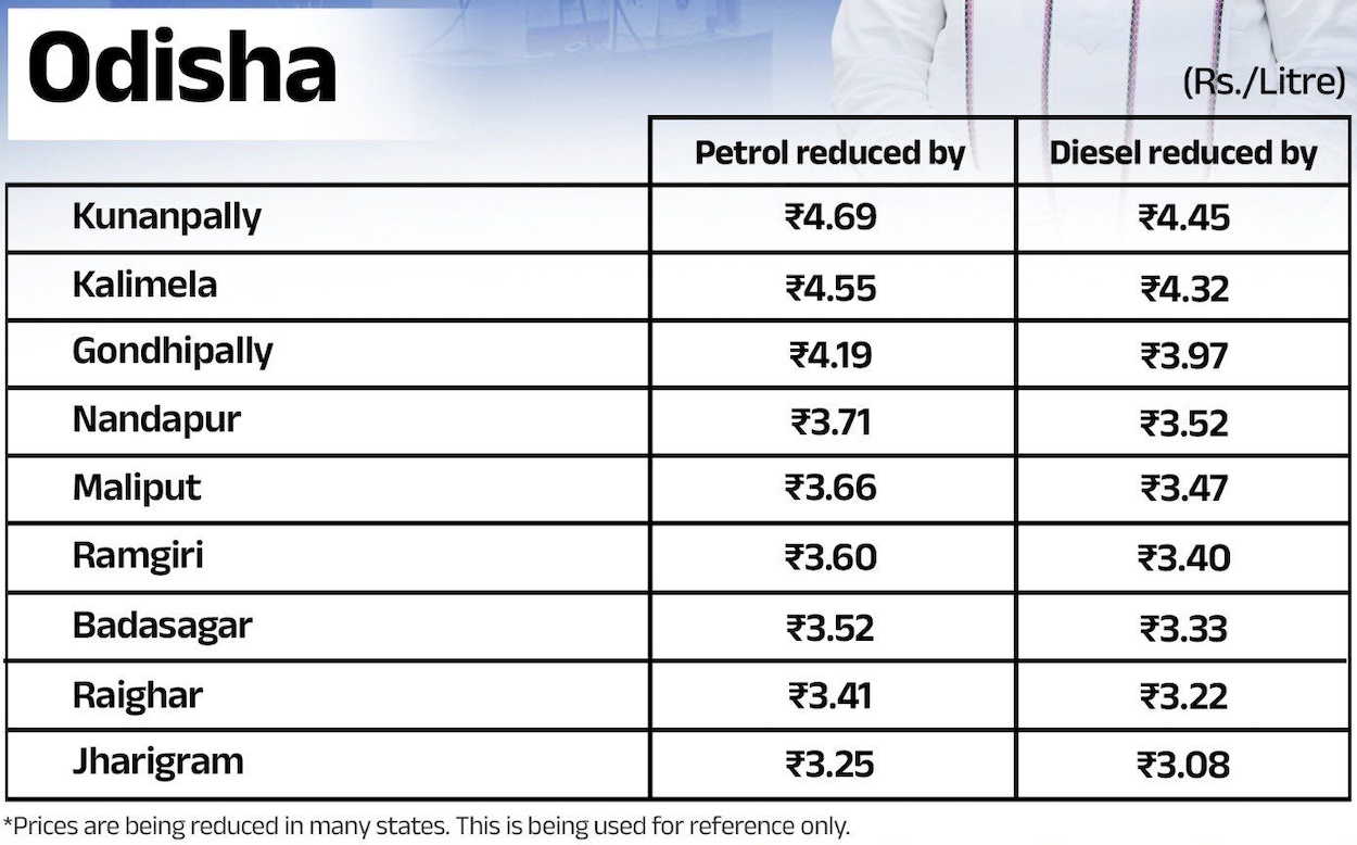 While hailing the decision as historic, Union Minister for Petroleum and Natural Gas, Hardeep Singh Puri, said that intrastate freight adjustments will benefit consumers in remote areas as it will result in a decrease in petrol and diesel prices in several parts of the country. “In Kunanpally & Kalimela in Odisha’s Malkangiri petrol price will reduce by Rs 4.69 & Rs 4.55; and diesel price will reduce by Rs 4.45 & Rs 4.32, respectively….,” he posted on X.