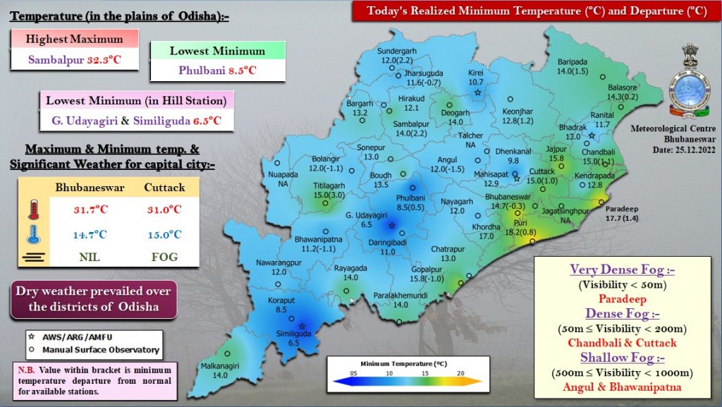 The IMD further said that very dense fog was observed at Paradip and dense fog at Chanbali and Cuttack. Angul and Bhawanipatna experienced shallow fog.