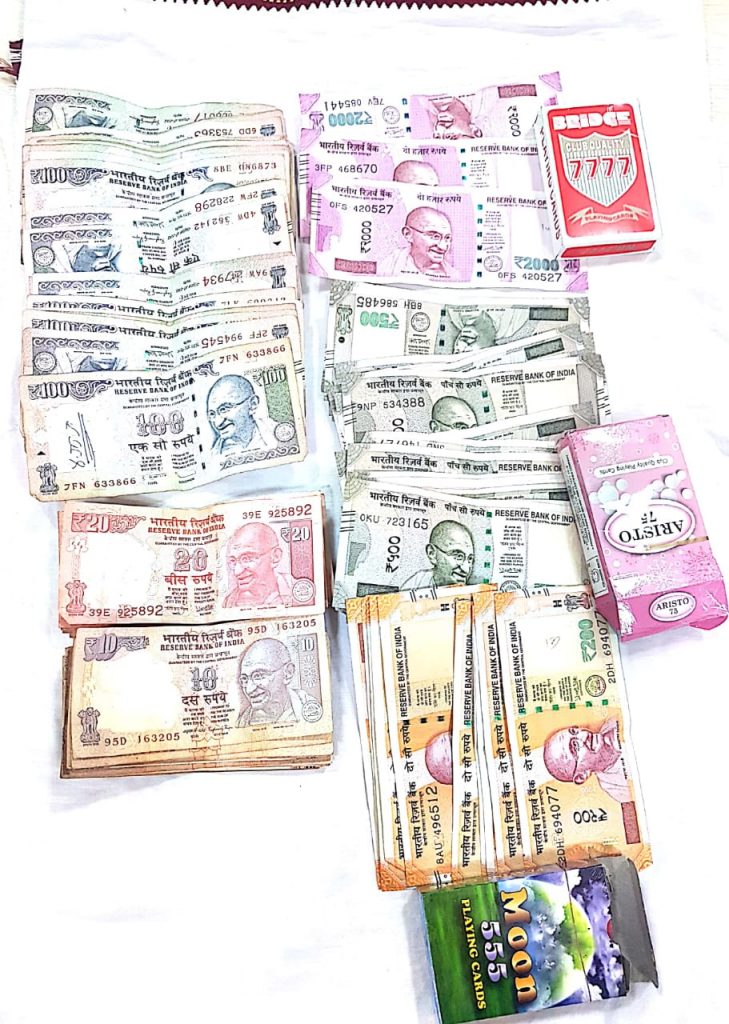 During search, three packets of playing cards and cash to the tune of Rs 19, 927 were seized from them.