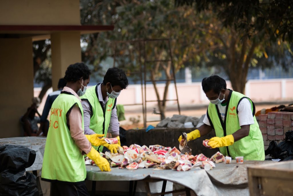 The facility is operational since the start of the Hockey World Cup wherein the entire waste is being deposited at the facility in organic and recyclable waste fractions. At the facility the waste is further being sorted and segregated in a manual way in several recyclable fractions (plastic, paper cup, cardboards and metals) by the informal sector. Training was given to them by the GIZ for proper segregation, sorting and stacking of recyclable fractions. Essentially the facility imparts the skill training and awareness to the rag pickers and sanitary workers.