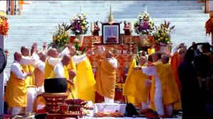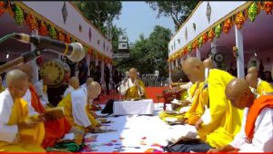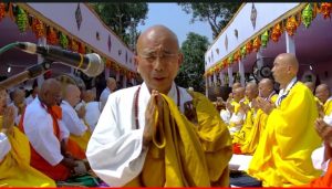 Bhubaneswar: Chief Minister Naveen Patnaik joined hundreds of monks from Japan, America, Ukraine and Kazakhstan, who congregated at Dhauli Peace Pagoda in Bhubaneswar to celebrate its 50th anniversary, on Friday.