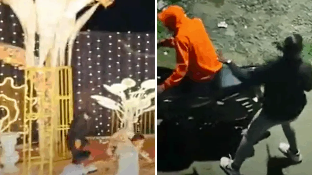 The video shows the attacker in an orange hoodie first striking the groom and then running out of the lawn to a motorcycle parked outside. Another individual, in black, also left the venue with the accused. The two then left on the motorcycle. A relative of the couple attempted to chase them but to no avail.