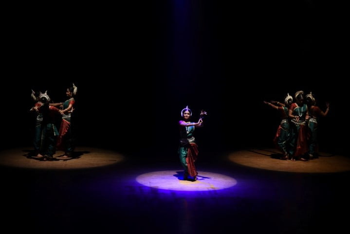 After the award presentation, the evening opened with Kirwani Madhurima, a neo-classical Odissi dance presentation scripted by Pt. Nityananda Misra to the original music composition of Dr. Vyzarsu Balasubramaniam and the choreography of Ratikant Mohapatra. They then presented ‘Maati’, derived from an inspiring and popular poem by the iconic Odia poet Radha Mohan Gadanayak. Ratikant Mohapatra had choreographed the piece, while the music was composed by Laxmikant Palit and the script adaptation was by Jaydev Das. Rajashri Praharaj, Ritu Sengupta, Pragna Parimita Das, Riyanka Chakrabarty, Aishwariya Singhdev, Sipra Swain, Maya Krishnamurty, Preetisha Mohapatra and Reebdhita Barua presented this composition with great energy and synchronization.