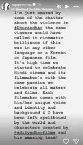 Addressing the issue publicly, while calling the backlash for ‘Dhurandhar’ as hypocrisy, the director wrote, “I’m just amazed by some of the chatter about the violence in #Dhurandhar the same viewers would have called it cinematic brilliance if this was in any other language or a Korean or Japanese film. It’s high time we started to celebrate Hindi cinema and its filmmakers with the same passion we celebrate all makers and films. Each filmmaker comes with his/her unique voice and identity and background & I have been left spellbound by the world and characters created by @adityadharfilms and his amazing team (sic)!”