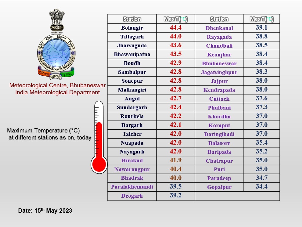 According to evening bulletin of the regional centre of Indian Meteorological Department (IMD), Balangir was the hottest place in the state with day temperature of 44.5 degree Celsius.
