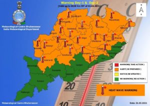 The IMD further said although there will be a slight change in weather condition in the state for two days from April 2 due to nor’wester in 12 districts of Balasore, Bhadrak, Jajpur, Kendrapada, Cuttack, Jagatsinghpur, Koraput, Rayagada, Kandhamal, Nayagarh, Khurda and Ganjam, it will intensify the heat wave from April 5 with a sharp increase in the day temperature by 4 to 6 degrees Celsius.