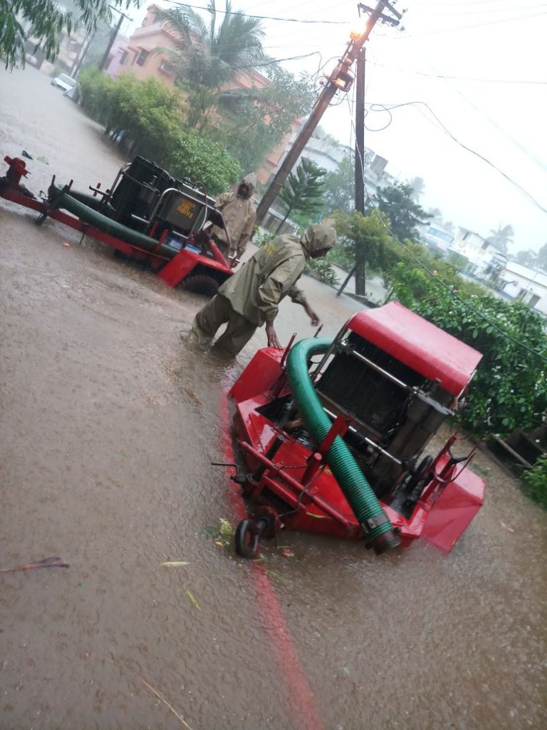 The team has started the work with the help of 30 high-powered pumps, 5 JCB machines, 2 proclain machines and 5 cesspool machines.