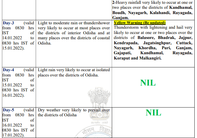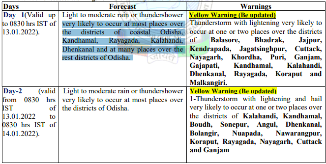Bhubaneswar: Odisha is likely to experience rainfall activity till January 14, the India Meteorological Department (IMD) informed on Wednesday.