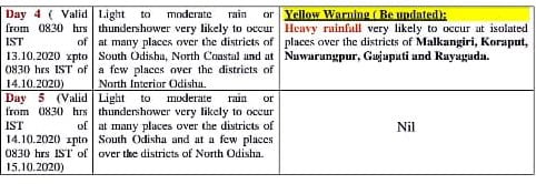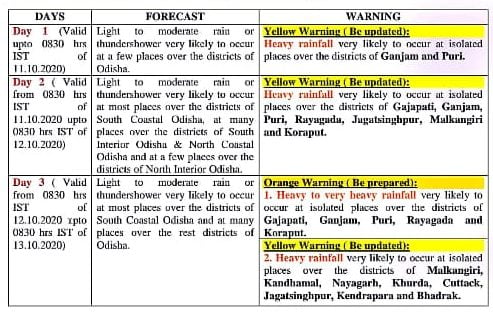 The IMD has issued yellow and orange warning of heavy rainfall from 1.30 pm of Saturday (October 10) till 8.30 of October 14.