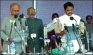 Hemananda being sworn-in as CM in  December, 1999. File photo