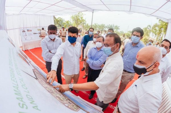 The high-level team reviewed the development works being undertaken under the SAMALEI project. The team also reviewed the field-level progress of the rehabilitation colony under-construction at Durgapalli. The colony is for the families who would be affected by the temple development project.