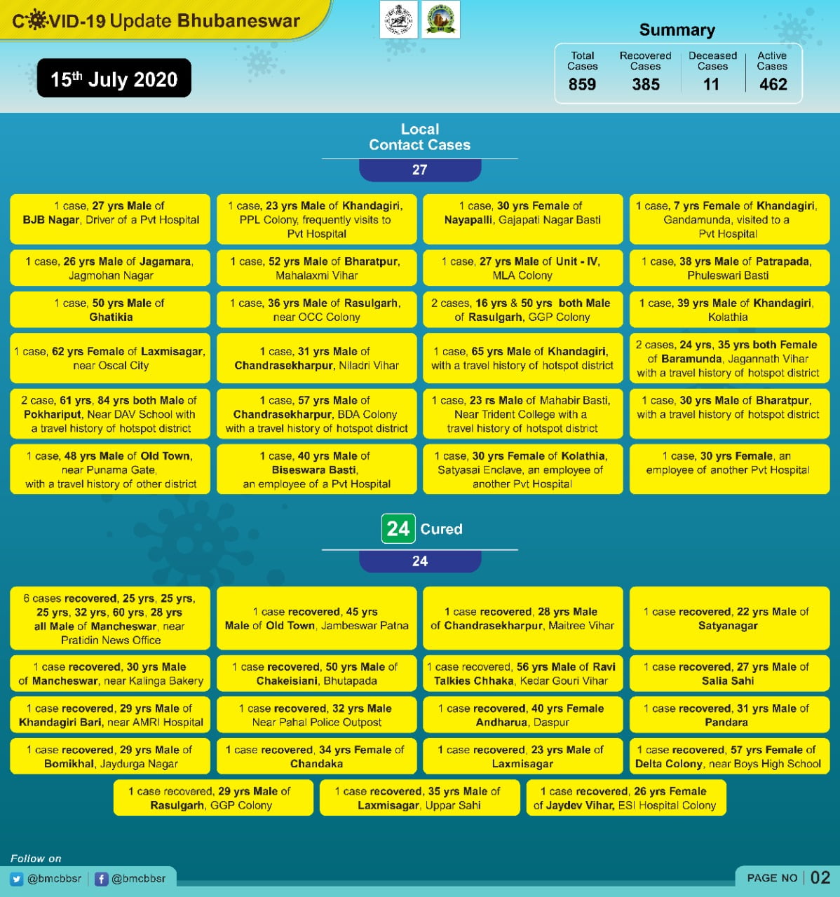 According to the Bhubaneswar Municipal Corporation, 55 of these are linked with earlier positive cases, while six had recently travelled outside the state. An employee of a private hospital and a staffer of a government office have also tested positive for the virus.