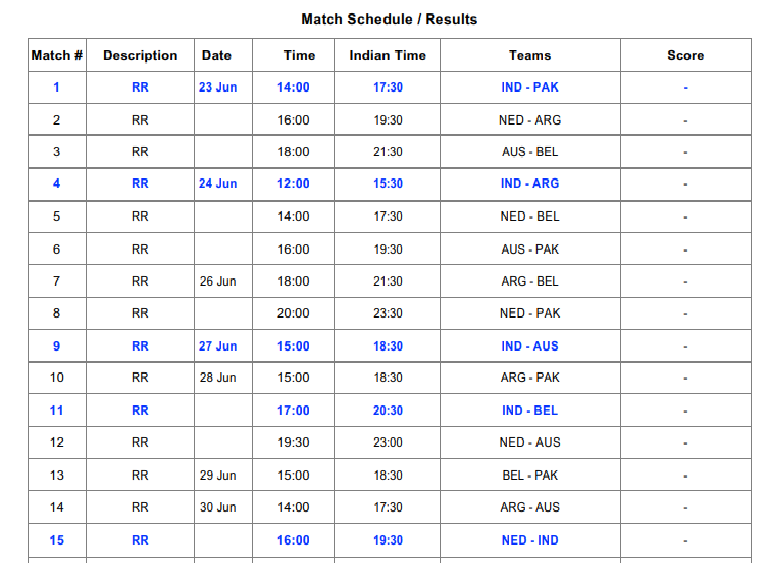 This was the 173rd face-off between India and Pakistan. India will play against Argentina tomorrow. Here’s the schedule.