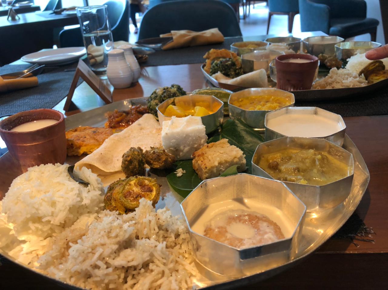The extensive platter included three types of anna, meetha dali, three types of curries, four types of khata, four types of pithas and two types of drinks. Nadia bara, pithou bhaja, and 4 types of khata made from fruits were the highlights.