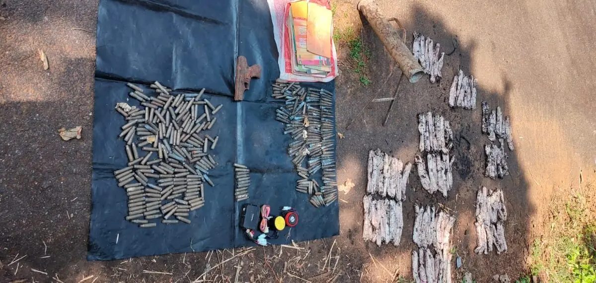 The recovered items included an improvised directional mine, a pistol, live cartridges, blank rounds, gelatin sticks, electronic devices, and Maoist books.