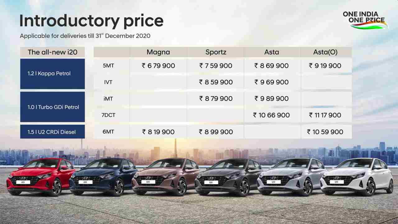 The prices of the new Hyundai i20 in India are as follows: